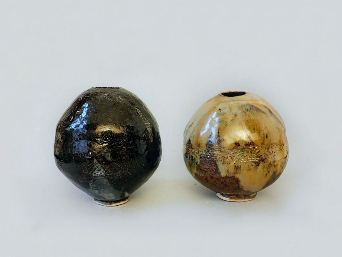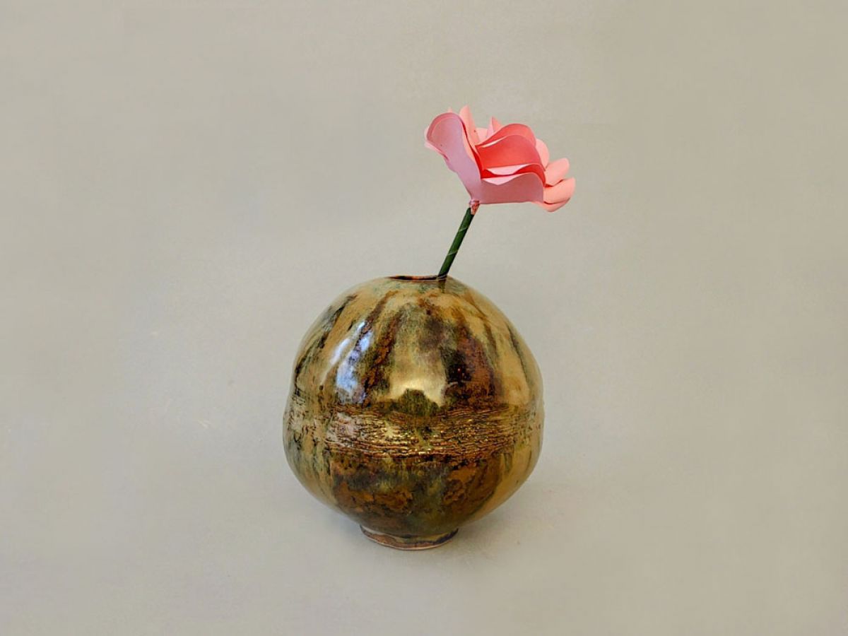 Kleine Vase in Beige und Braun